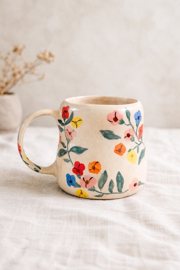 Taza Florida con diseño de bouquet de flores orgánicas envolventes. 280 ml